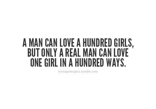 A man can love a million girls, but ONLY a REAL MAN can love ONE