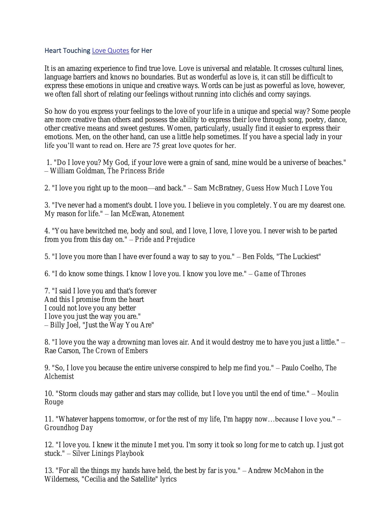Love Quotes For Her Pdf – Before we hit our favorite love quotes for her, read on for ways to share these meaningful words—and why it’s important to do so in your relationship. Related: The 100 Best Love Quotes for Your . Let her know that she holds a special place in your heart with heartfelt happy Valentines Day quotes for your sister. Your dear sis is someone who shares not just blood, but a bond that contains love, .
