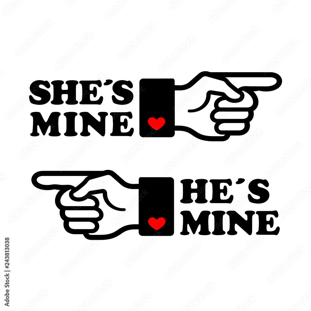 Index finger, saying, quote, SHE IS MINE, HE IS MINE, symbol love